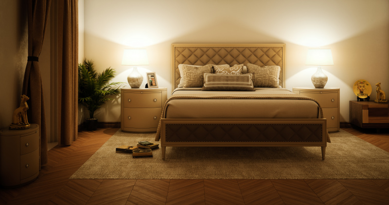 When designing your ultimate bedroom, be sure to promote relaxation with the right tones. Because this is a place of rest, steer clear of bright colors. Also avoid white, as this can be an intense and jarring choice due to light reflecting off it first thing in the morning. Select a paint color for your walls in light and muted tones, such as greys, light blues and greens, like you would see in a spa.